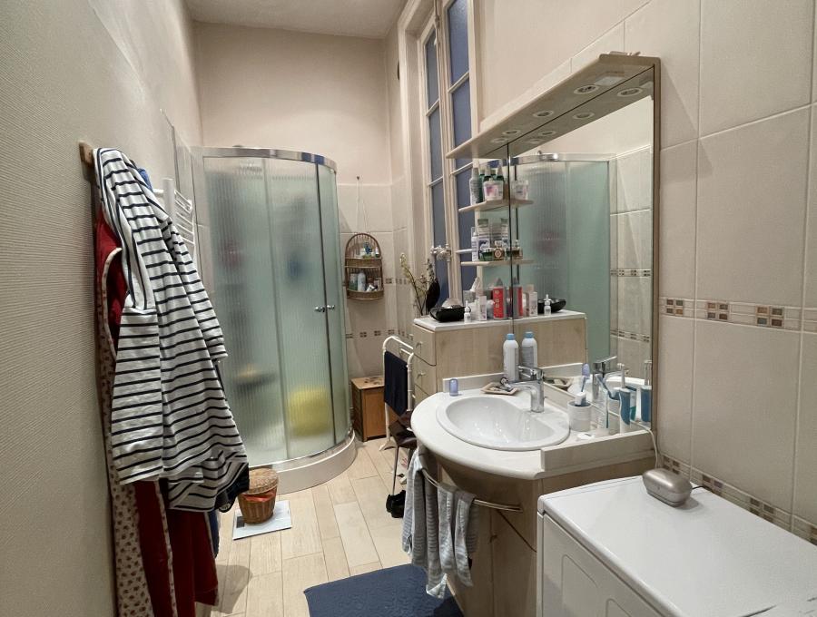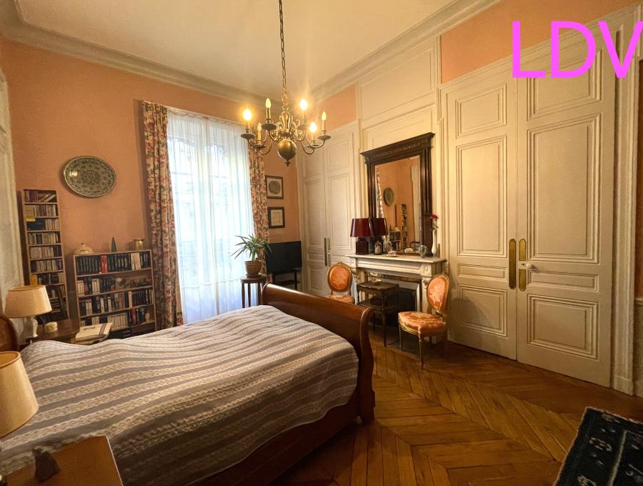 Très bel appartement de 106 m2 situé au 2ème étage/4 d'un immeuble en pierre du 19ème siècle (sur son terrain). Il a un plan en étoile qui dessert 3 chambres, 1 séjour, 1 salle de douche et wc séparé, 1 cuisine. + 1 cave + 1 grenier.
