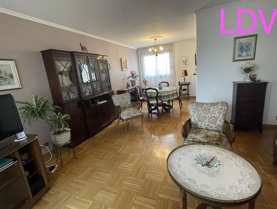 Appartement T3 de 77 m2 environ au 6ème étage/8 d'un immeuble de 1981 (avec ascenseur). Il est en parfait état, traversant et lumineux. Il se compose d'une entrée, un séjour avec balcon de 7 m2, une cuisine séparée et équipée, 2 chambres, 1 salle de bains, 1 wc séparé. Nombreux placards. + 1 cave + 1 garage fermé.