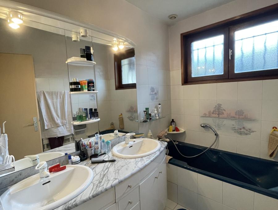 Maison de 120 m2 environ sur sous-sol complet datant de 1985 et située dans un lotissement. Et sur un terrain arboré de 970 m2.