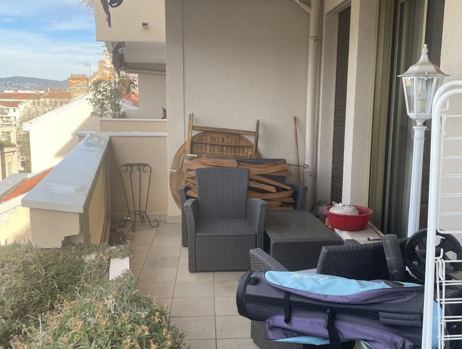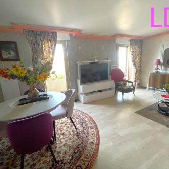 Très bel appartement T3 de 76,45 m2 situé au 5ème étage/6 d'un immeuble de standing RIC de 1985. Il se compose d'une entrée, un séjour avec sol en marbre et balcon de 7 m2 exposé Ouest, 1 cuisine séparée et équipée, 2 chambres, 1 salle de douche et 1 salle de bains, 2 wc, + 1 cave + 1 garage fermé en sous-sol.